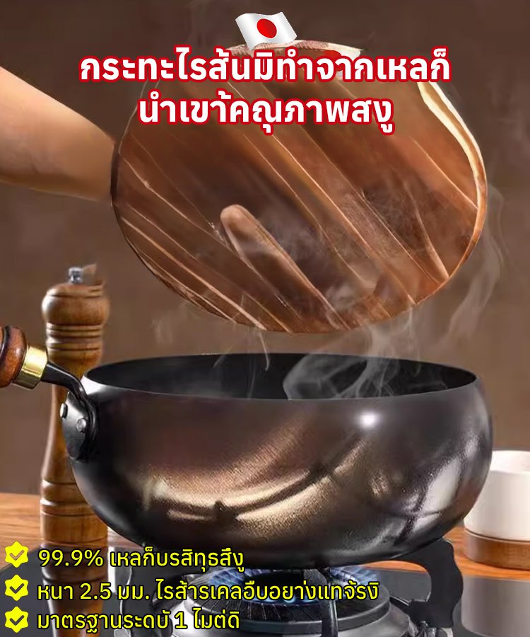 【หม้อสุขภาพไร้สารเคลือบ】หม้อเหล็กบริสุทธิ์เสริมธาตุเหล็กไม่ติด